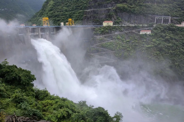 江口水電站開閘泄洪。國(guó)家電投重慶公司供圖