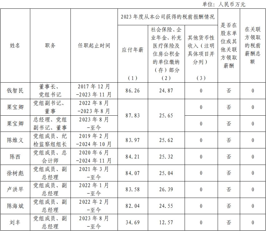 國家電力投資集團(tuán)有限公司企業(yè)負(fù)責(zé)人2023年度薪酬情況