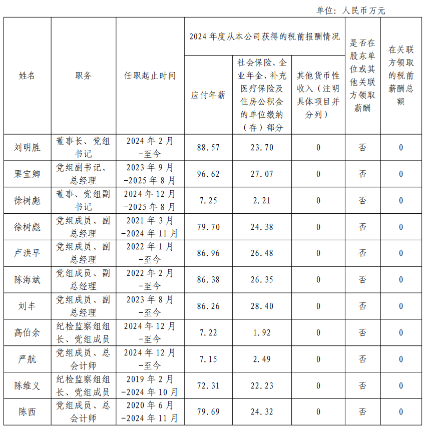 國家電力投資集團有限公司企業(yè)負責人2024年度薪酬情況