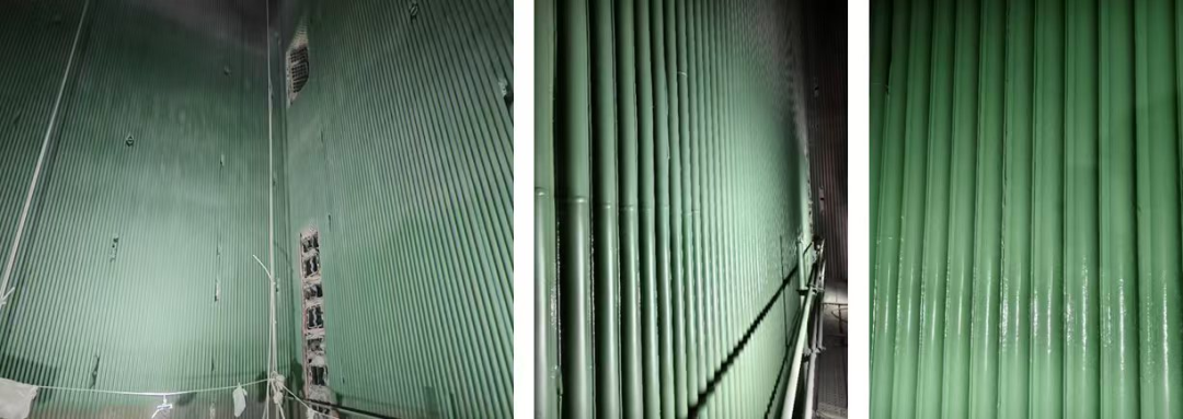 隨后,材料在165MW機(jī)組開展鍋爐數(shù)值模擬和能效測(cè)試。結(jié)果顯示,涂層防結(jié)焦、耐高溫腐蝕性能優(yōu)異。