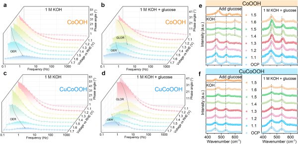 研究人員首先比較了多種地殼豐度較高的金屬氧羥化物,確定CoOOH是葡萄糖氧化的理想起點。隨后,他們系統(tǒng)性地引入不同摻雜元素,發(fā)現(xiàn)僅添加5mol%的銅即可顯著提升CoOOH的選擇性與電催化效率。經(jīng)銅摻雜后,甲酸鹽的生成率由50%提高至80%,葡萄糖氧化的起始電位降低約400mV,使得在堿性條件下實現(xiàn)高度節(jié)能的共電解成為可能。