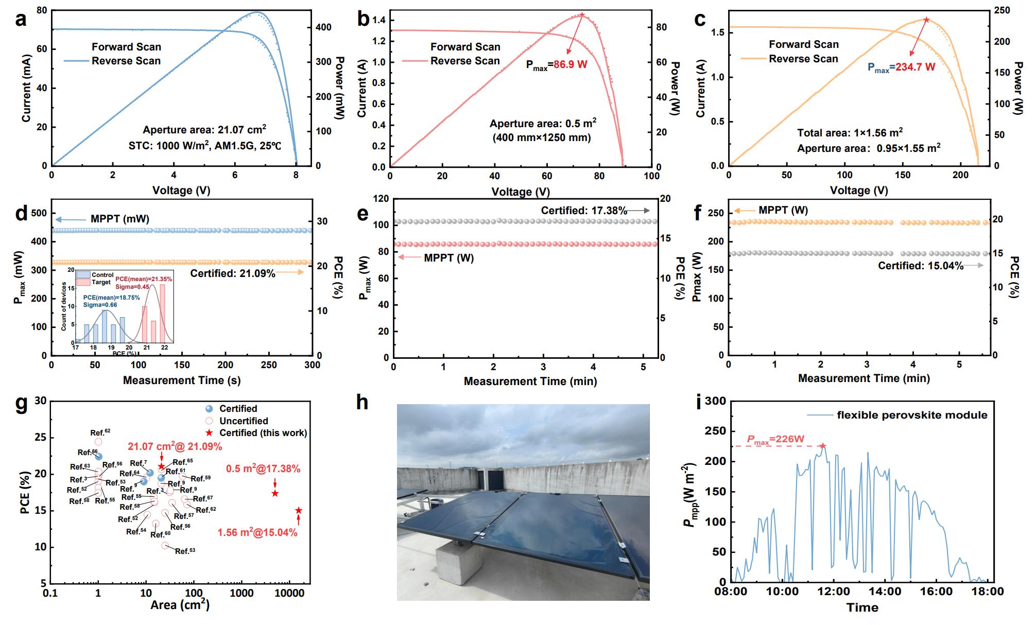 基于非晶晶界鈍化鈣鈦礦的組件認(rèn)證效率,及其戶(hù)外部署照片和發(fā)電情況。