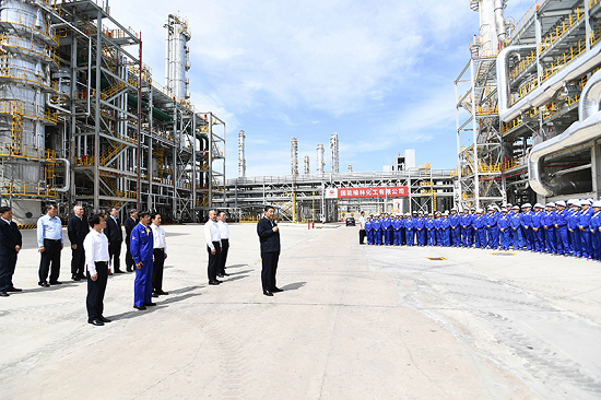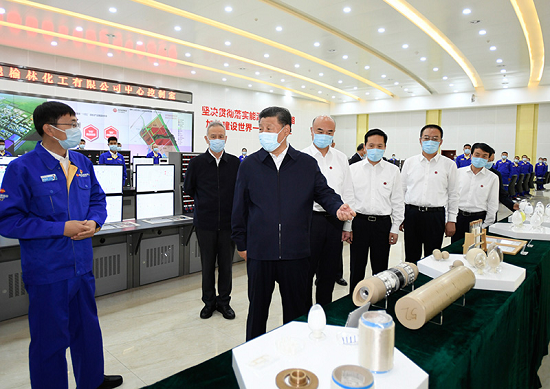 9月13日至14日,中共中央總書記、國(guó)家主席、中央軍委主席習(xí)近平在陜西省榆林市考察。這是13日上午,習(xí)近平在國(guó)家能源集團(tuán)榆林化工有限公司年產(chǎn)40萬(wàn)噸乙二醇項(xiàng)目現(xiàn)場(chǎng)考察。新華社記者 李學(xué)仁 攝