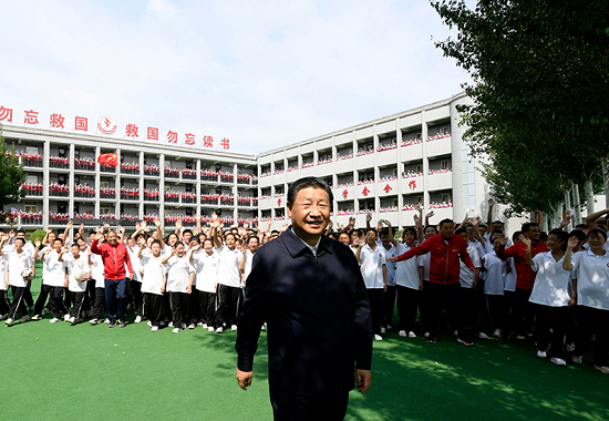 9月13日至14日,中共中央總書記、國(guó)家主席、中央軍委主席習(xí)近平在陜西省榆林市考察。這是14日上午,習(xí)近平同綏德實(shí)驗(yàn)中學(xué)的學(xué)生在一起。新華社記者 李學(xué)仁 攝