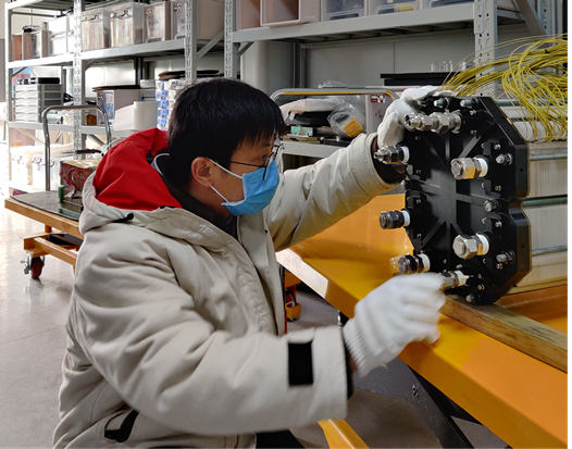 組裝、測試、性能分析,是陸維及其率領(lǐng)的電堆組裝團隊每天的主要工作,他們負責第三代高性能燃料電池電堆的總裝與集成,這是燃料電池研發(fā)的核心環(huán)節(jié)。