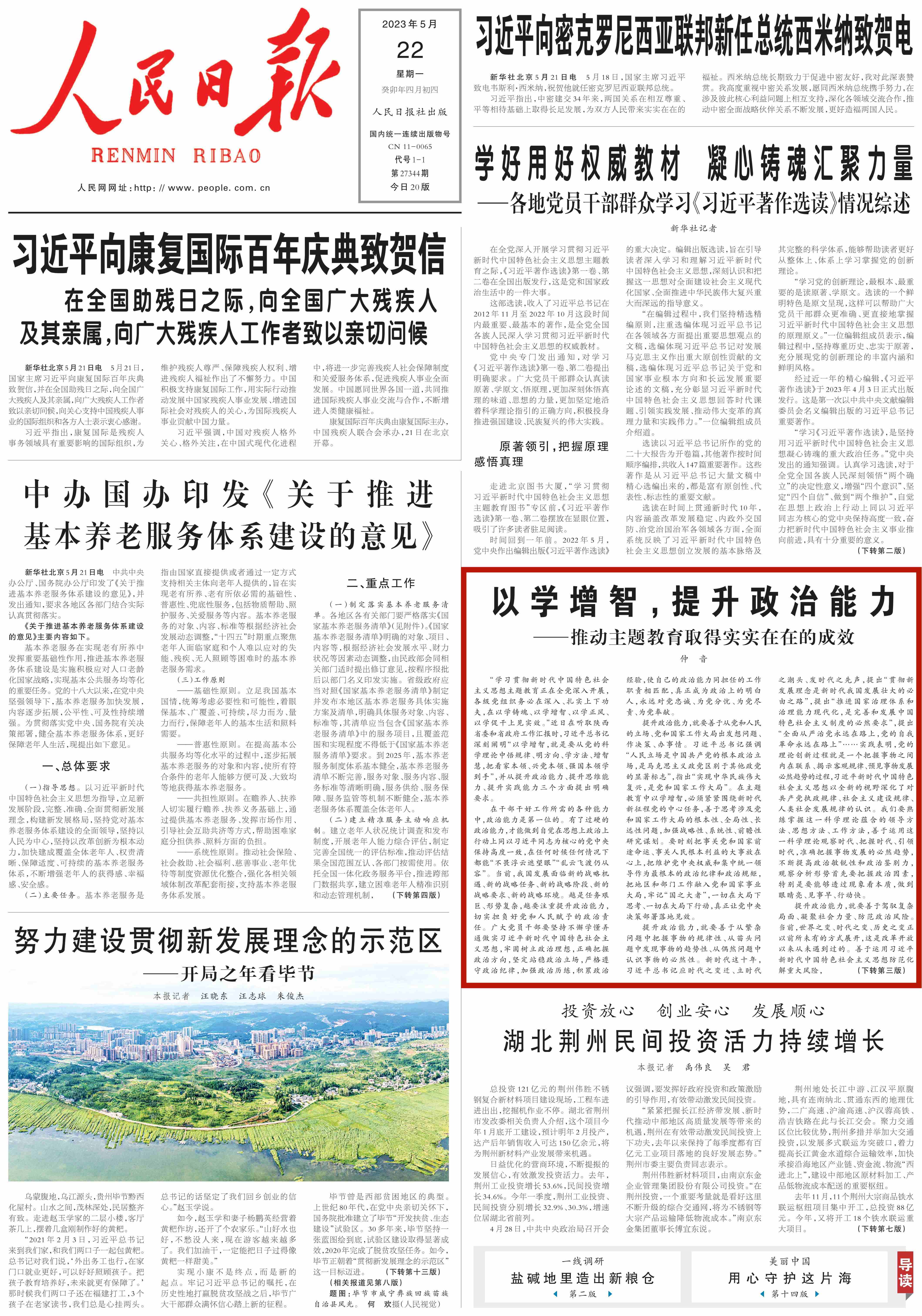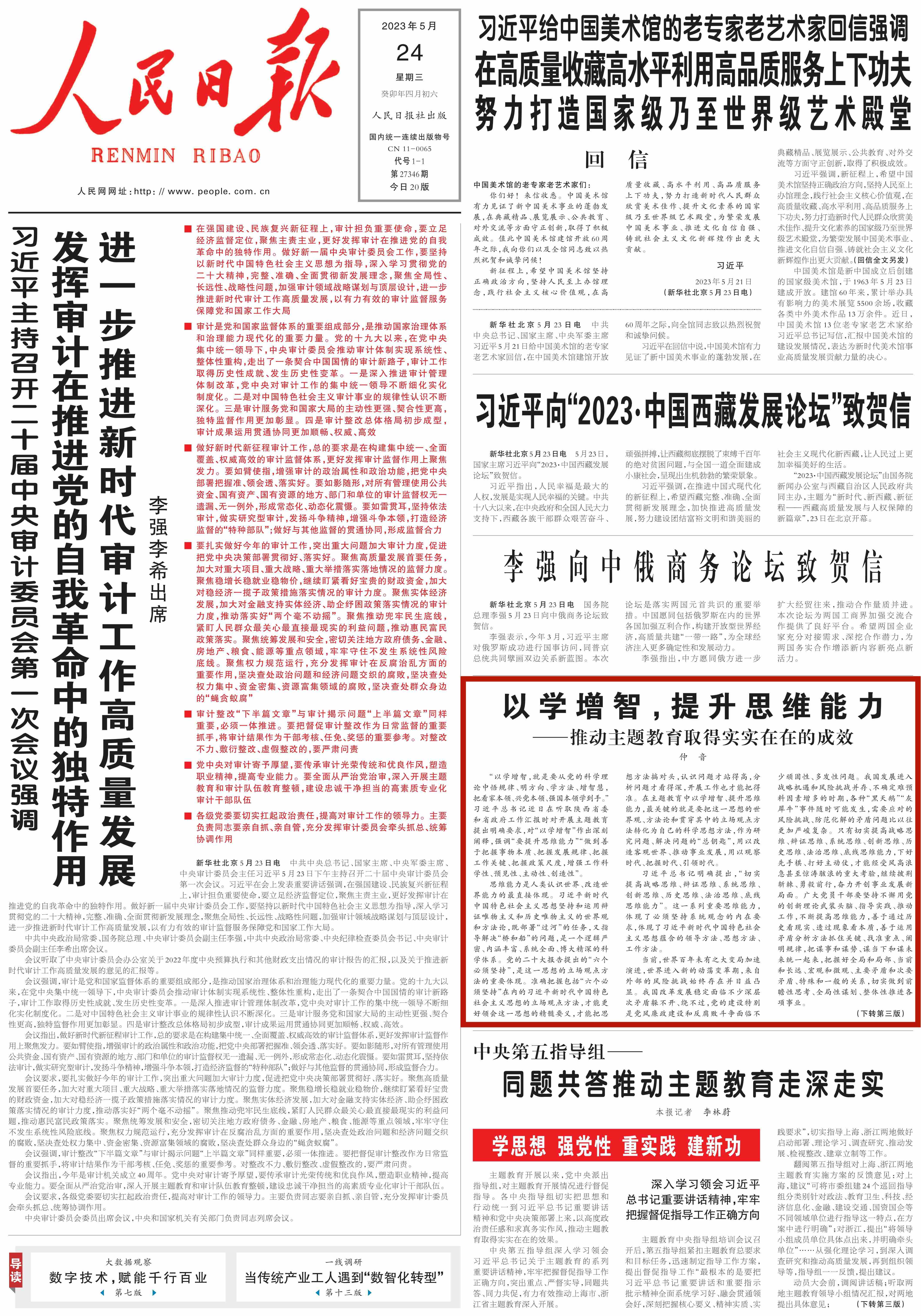 “學(xué)習(xí)貫徹新時代中國特色社會主義思想主題教育正在全黨深入開展,各級黨組織務(wù)必在深入、扎實(shí)上下功夫,在以學(xué)鑄魂、以學(xué)增智、以學(xué)正風(fēng)、以學(xué)促干上見實(shí)效。”近日在聽取陜西省委和省政府工作匯報時,習(xí)近平總書記深刻闡明“以學(xué)增智,就是要從黨的科學(xué)理論中悟規(guī)律、明方向、學(xué)方法、增智慧,把看家本領(lǐng)、興黨本領(lǐng)、強(qiáng)國本領(lǐng)學(xué)到手”,并從提升政治能力、提升思維能力、提升實(shí)踐能力三個方面提出明確要求�!度嗣袢請蟆房l(fā)三篇仲音文章,圍繞“以學(xué)增智”進(jìn)行重點(diǎn)闡釋。