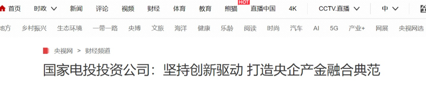 央視網(wǎng):國家電投投資公司堅持創(chuàng)新驅(qū)動 打造央企產(chǎn)金融合典范